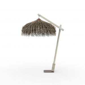 L’ombrellone a sbraccio in Makuti naturale è perfetto per godere della compagnia di amici e parenti attorno ad un tavolo, immersi in un’atmosfera tropicale. Grazie alla posizione laterale del palo di supporto in legno, l'ombrellone offre un confortevole spazio al di sotto della sua copertura, permettendo agli ospiti di guardarsi negli occhi. L’autentica foglia di palma da cocco naturale ''Makuti'' proveniente dal Kenya, regala un’immagine leggera e vacanziera per un’esperienza indimenticabile: dona, infatti, un fresco riparo anche nei giorni più caldi, contrariamente ad altri materiali sintetici in PVC. Disponibile anche in formato doppio e affiancabile per un'ombra più ampia.