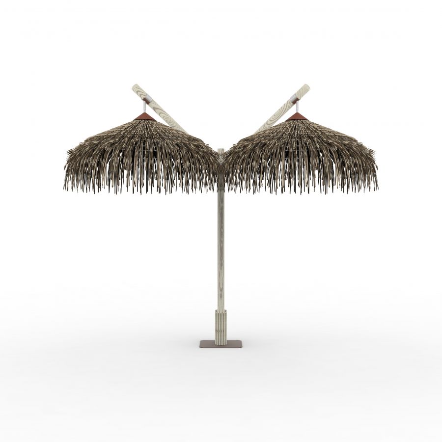 L’ombrellone a sbraccio in Makuti naturale è perfetto per godere della compagnia di amici e parenti attorno ad un tavolo, immersi in un’atmosfera tropicale. Grazie alla posizione laterale del palo di supporto in legno, l'ombrellone offre un confortevole spazio al di sotto della sua copertura, permettendo agli ospiti di guardarsi negli occhi. L’autentica foglia di palma da cocco naturale ''Makuti'' proveniente dal Kenya, regala un’immagine leggera e vacanziera per un’esperienza indimenticabile: dona, infatti, un fresco riparo anche nei giorni più caldi, contrariamente ad altri materiali sintetici in PVC. Disponibile anche in formato doppio e affiancabile per un'ombra più ampia.